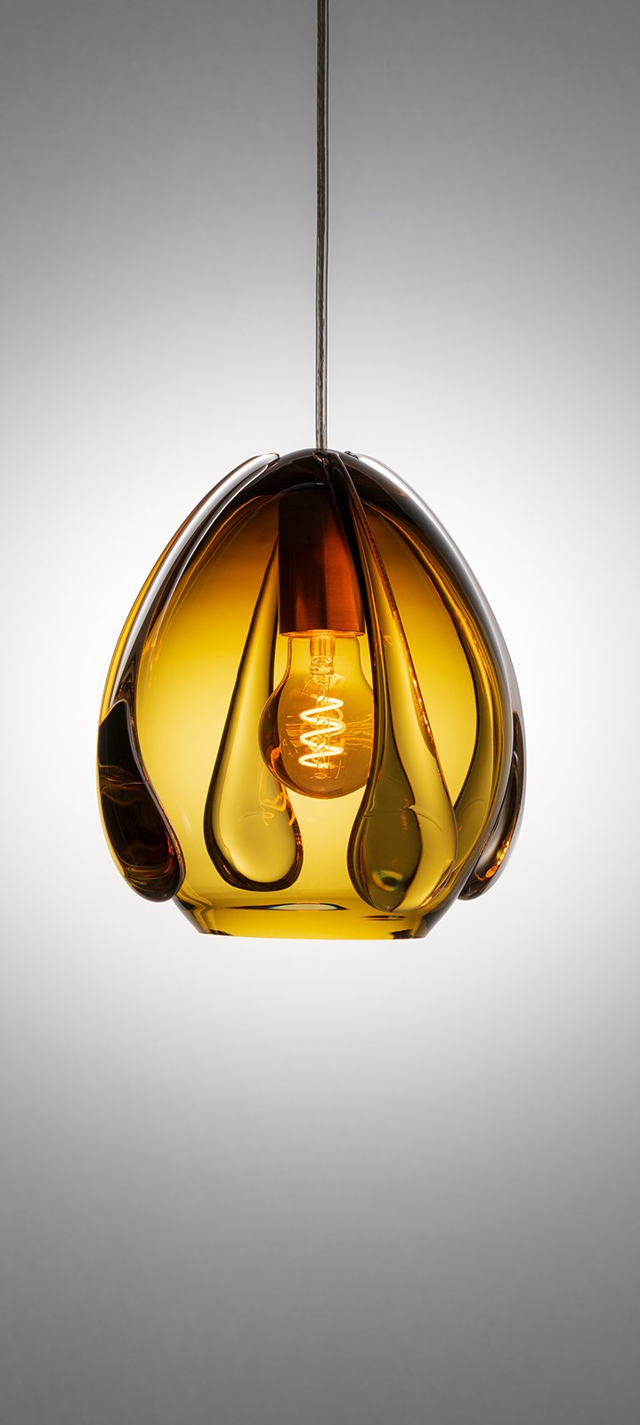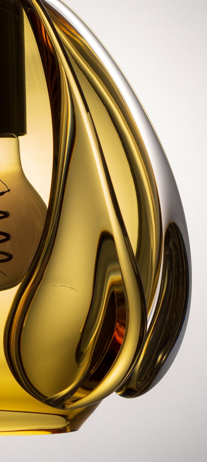 The appearance of our mouth-blown glass lights changes depending on their thickness, the light bulb inside, reflections from other objects in an interior, and external light. We recommend using dim light bulbs to accentuate the idiosyncratic character of the glass.
