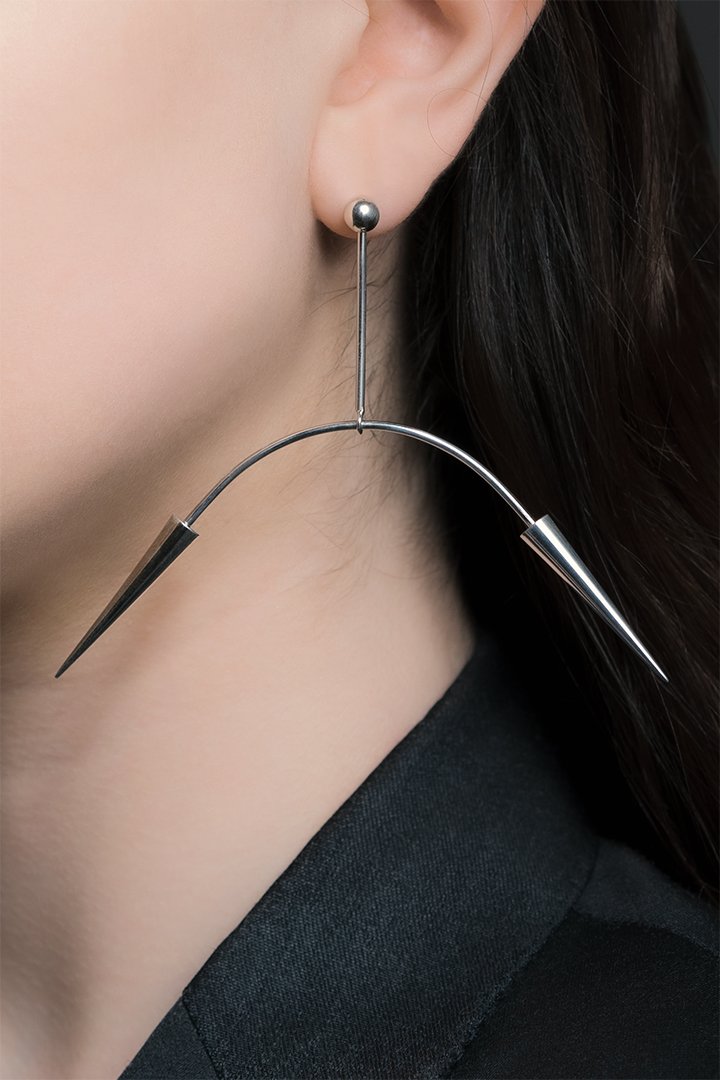 Therefore, a key feature of the “Matador” series is the choice of materials. If you decide to order this pair in 999 Fine Silver, please note that the higher the purity of the silver, the more fragile and malleable the earrings will be. This concept of fragility is actually something we love, and the first pair of this design we made was in 999 Fine Silver, still worn by Elina today.