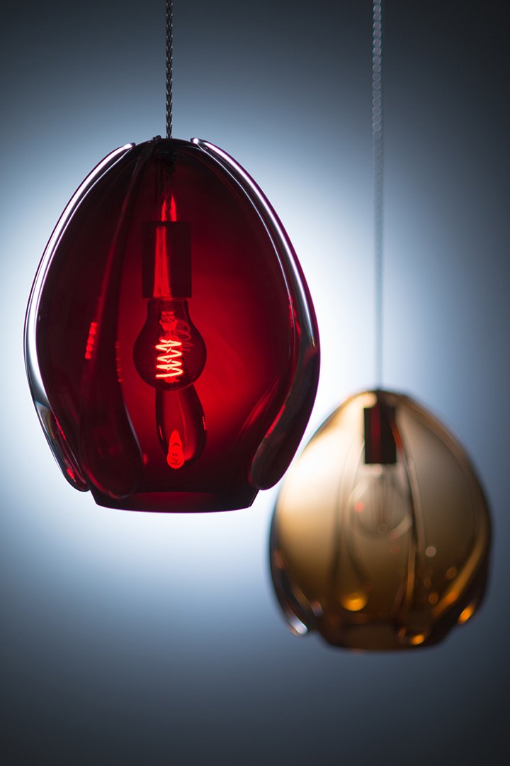 One of the most fascinating qualities of glass for us is its ability to metamorphose. The changing appearance of our mouth-blown lights can vary depending on their thickness, light bulb inside, reflections from other objects in an interior and external light. For that reason we recommend using dim light bulbs to accentuate the idiosyncratic character of the glass.